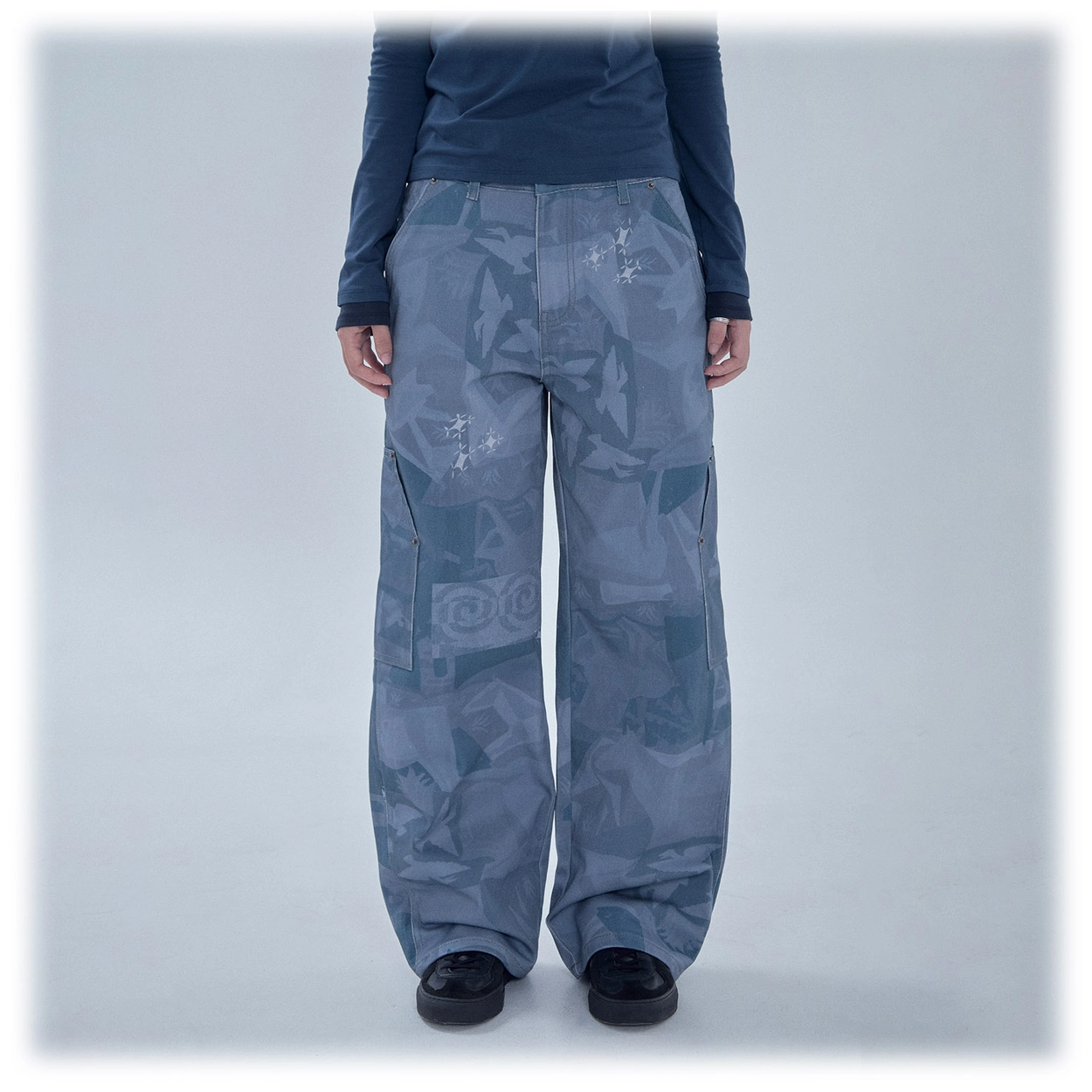 FLOWER PRINTED PIGMENT PANTS (BLUE)